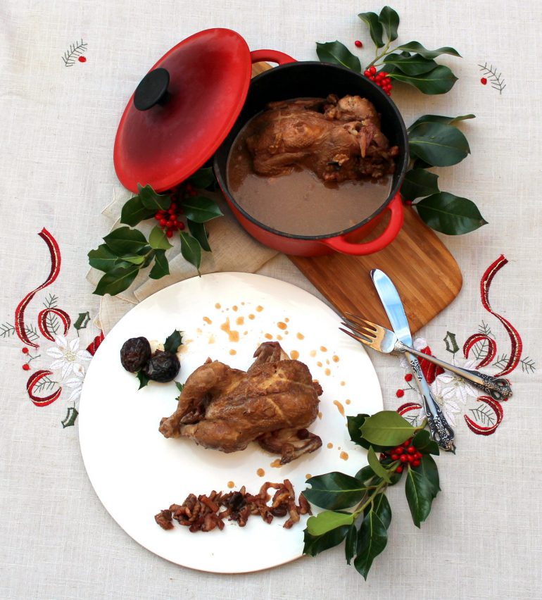 Más de uno o una estará pensando ya en los menús de Navidad. Faltan ya muy pocos días y las opciones son muchas… Hoy os queremos mostrar una receta que encaja a la perfección en la cena de Nochebuena o la comida de Navidad: Picantones guisados con dátiles y ciruelas pasas.