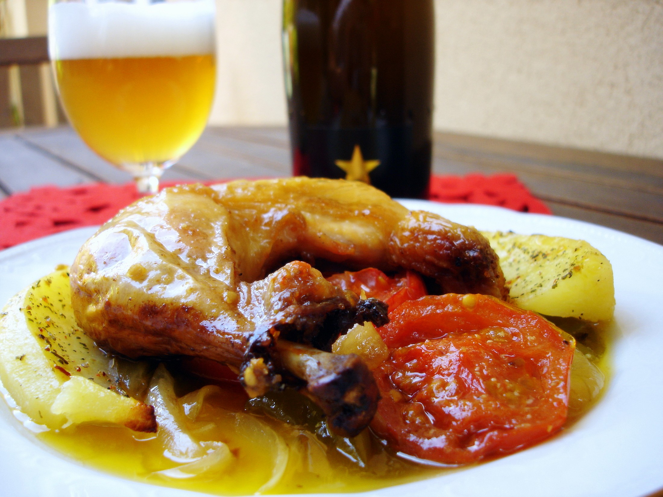Servimos  y degustamos junto con una cerveza muy fría Inedit, que viene de lujo con el pollo asado.