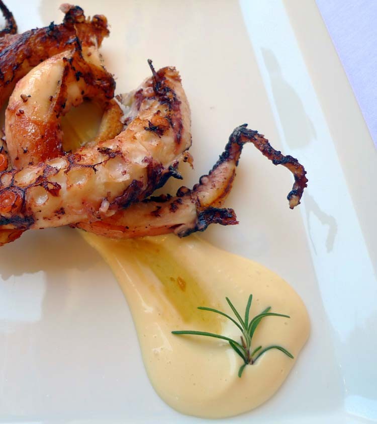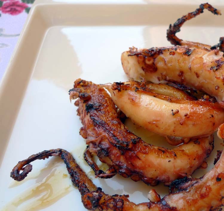 El otro día sacamos uno de estos pulpos que teníamos en el congelador para elaborar un pulpo a la gallega o a féira. Como era grande, las patas más finas las reservamos con intención de elaborar al día siguiente un pulpo a la parrilla o plancha.