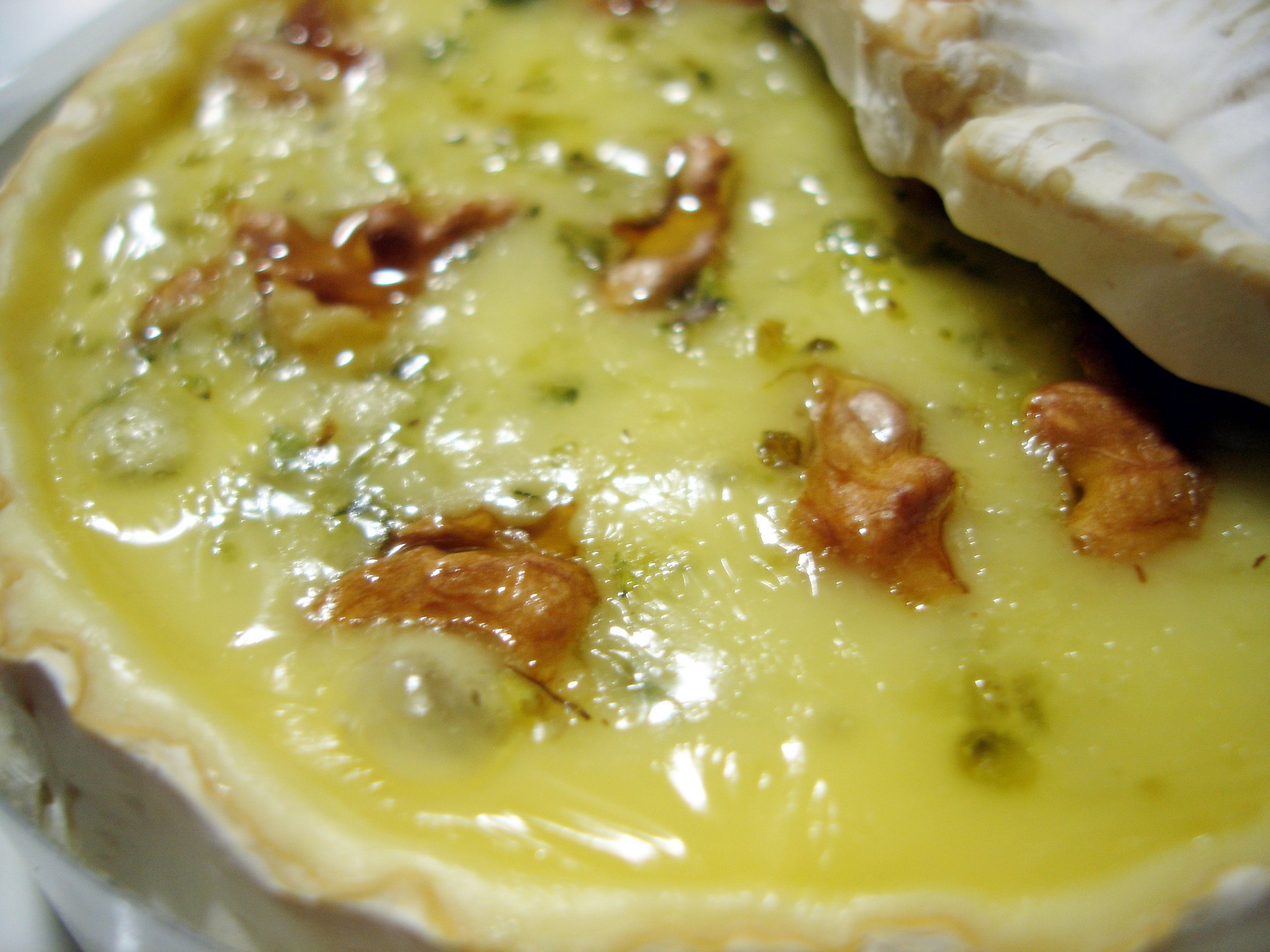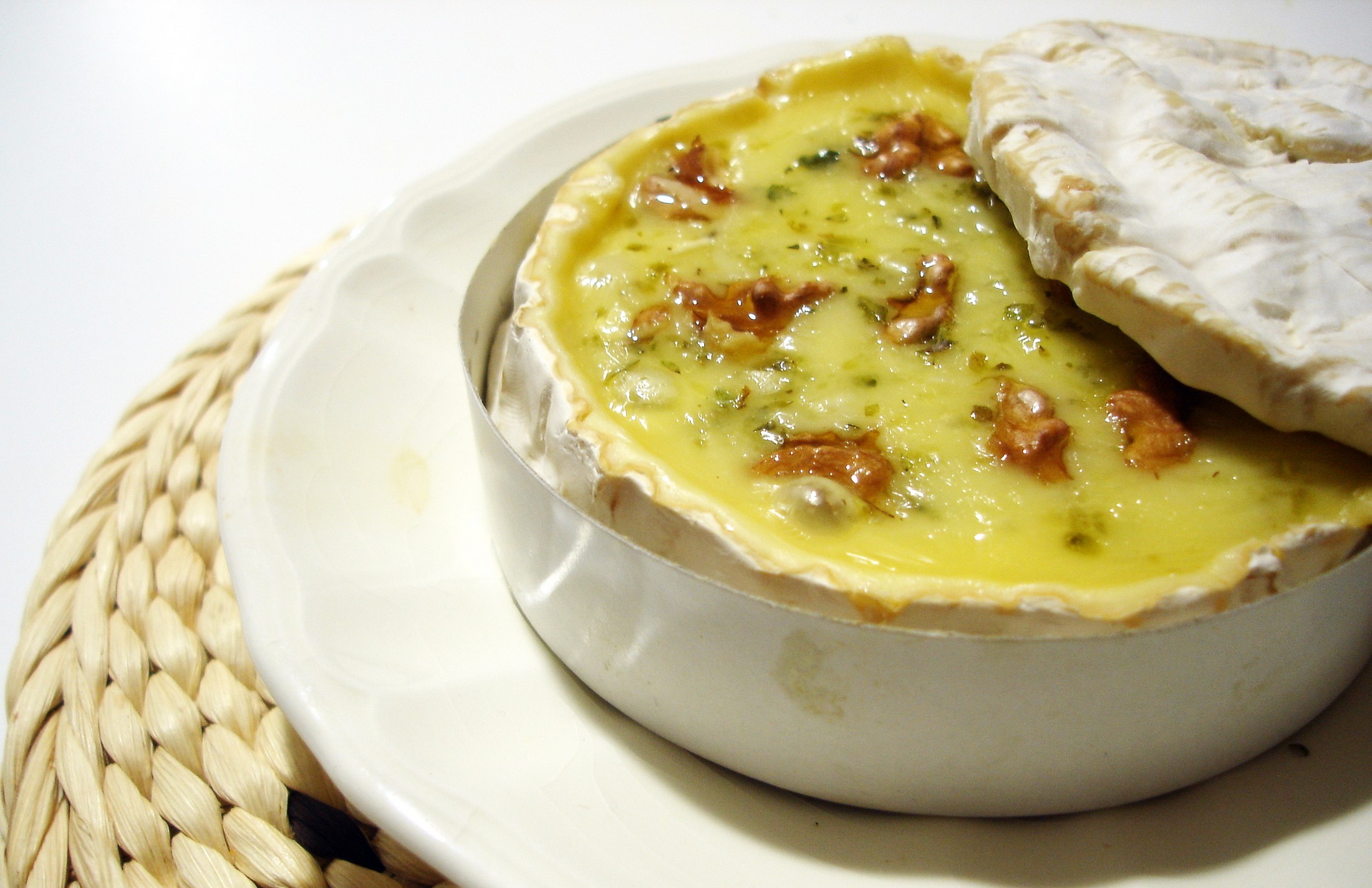 - Sacamos y degustamos la receta de queso brie al horno con nueces con unos picos, palitos de pan, colines o regañás.