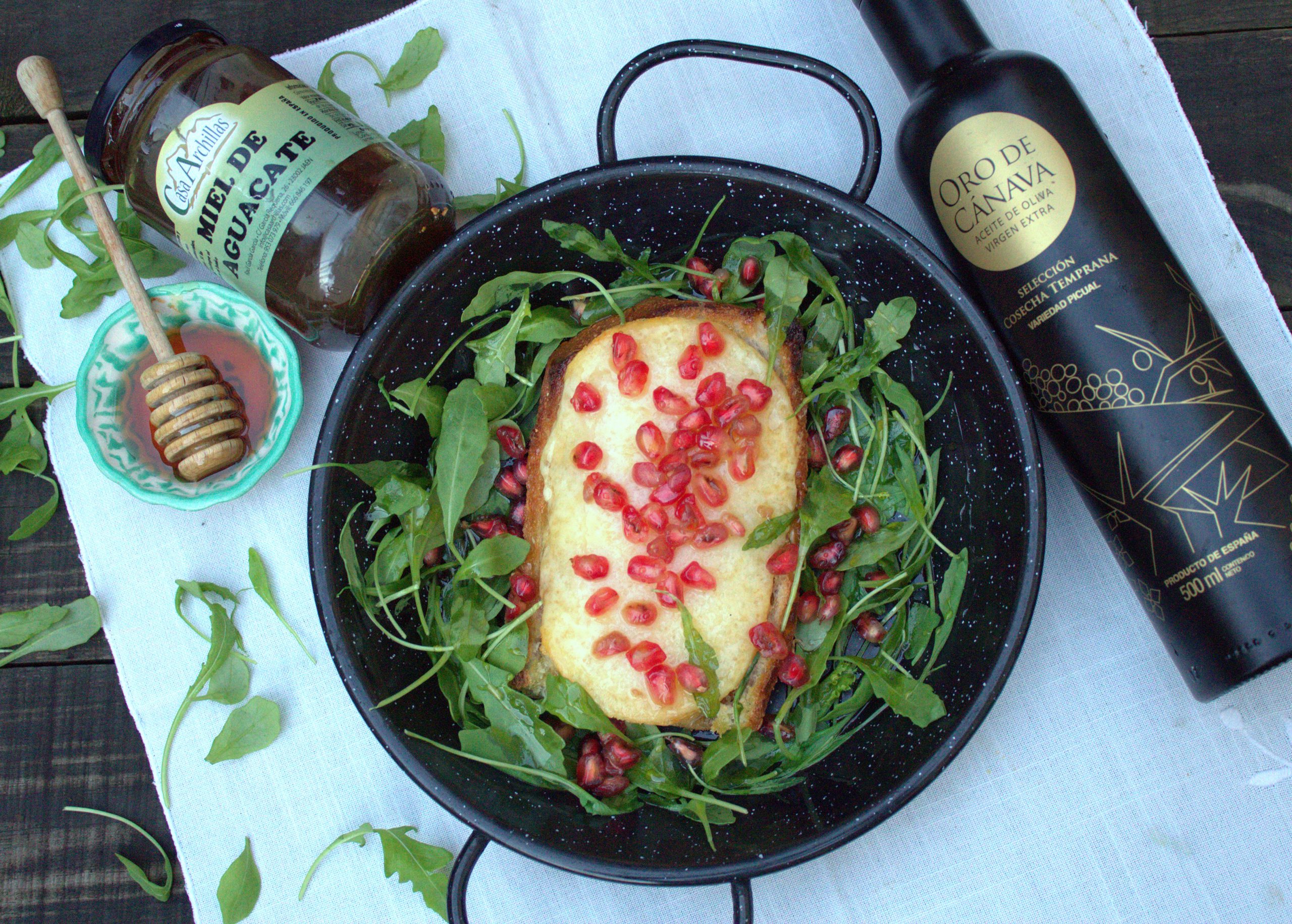 Queso Pata de Mulo al horno con vinagreta de miel y granada