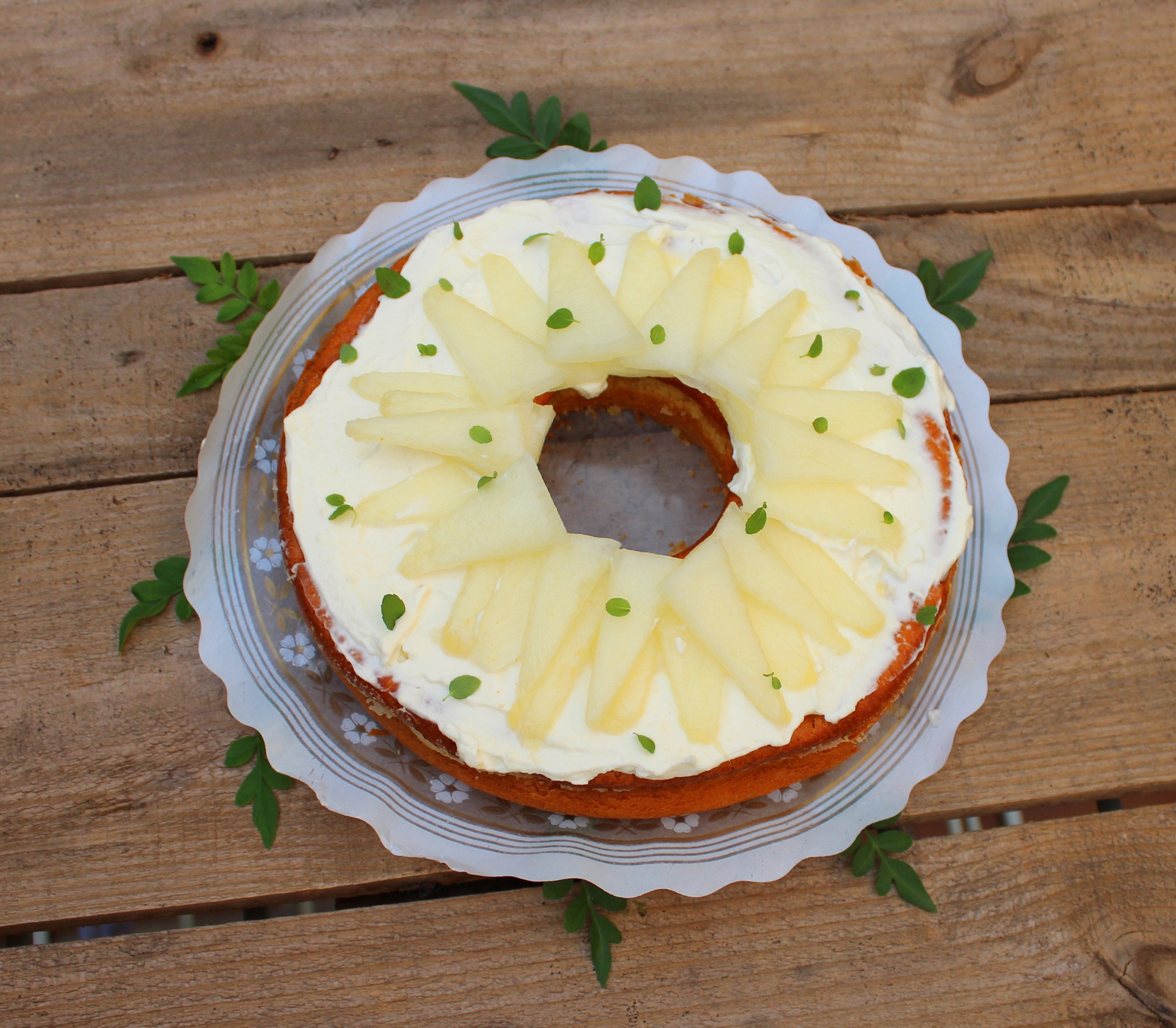 El resultado, el que veis, una estupenda receta de bizcocho, muy original y llamativa, que además es relativamente fácil de cocinar, y si encima le ponemos una cobertura como esta de queso mascarpone y melón, el resultado puede ser excepcional.