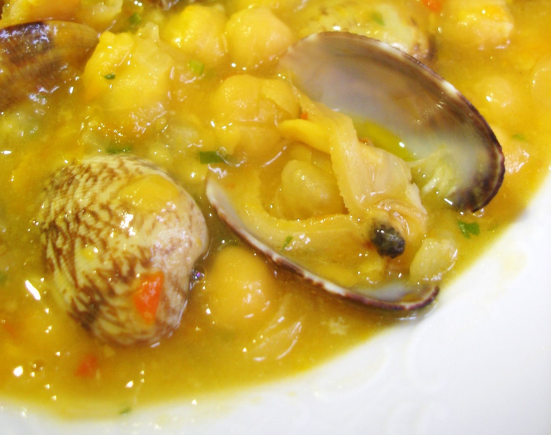 Una original combinacion en un potaje de garbanzos con almejas, que nos reconforta en los frios dias del invierno
