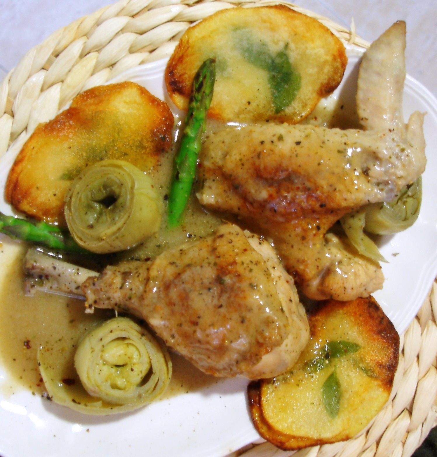 12. Servimos la receta de pollo en salsa de coco acompañada de unos espárragos trigueros a la plancha.