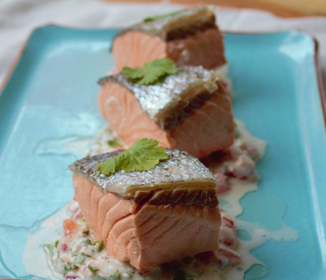 Salmon confitado con salsa de yogur