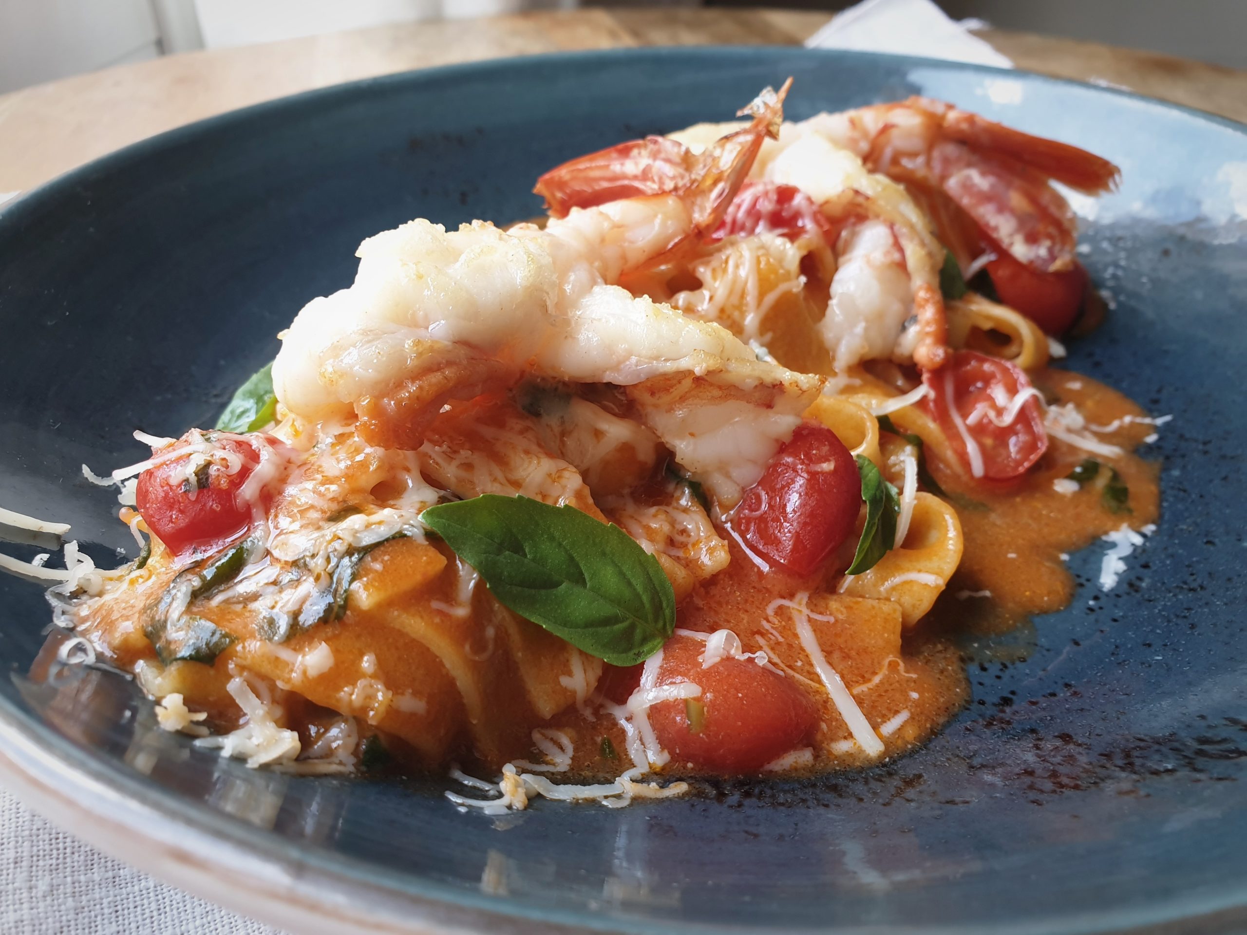 Tallarines con gambones y cherris, una receta de pasta que ha encantado a nuestros comensales.