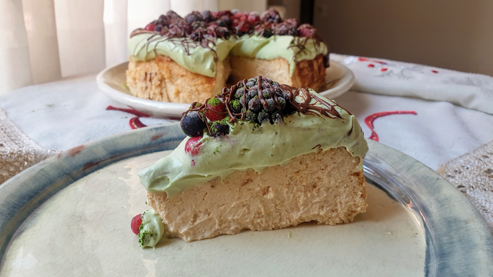 Tarta de queso con frutos rojos y chocolate