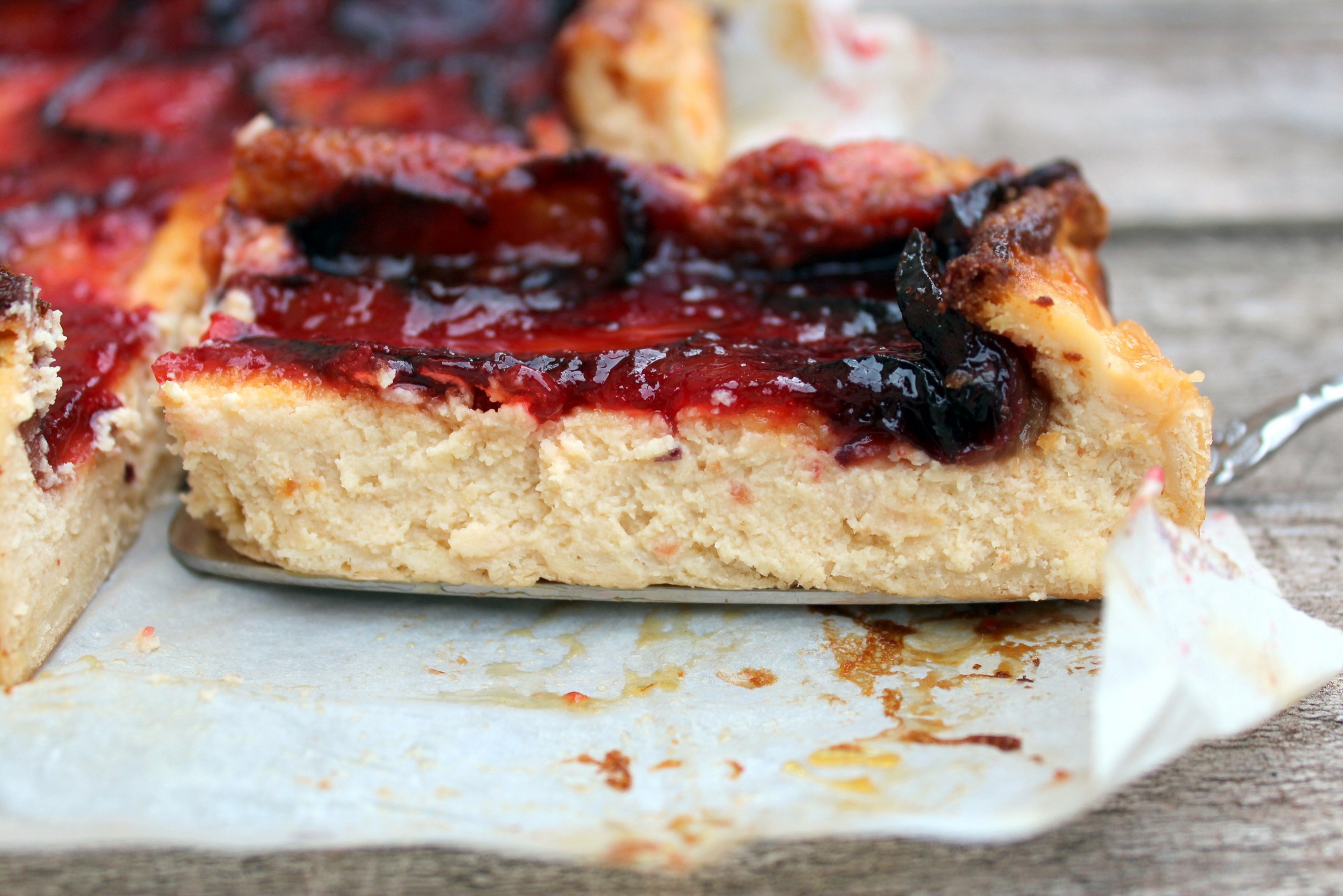 Tarta de queso y ciruelas rojas, una deliciosa receta que hará las delicias de tus comensales.