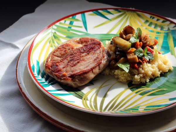 En nuestro caso hemos preparado un Tournedó de Ternasco de Aragón a la plancha acompañado por un cuscús y verduras salteadas.