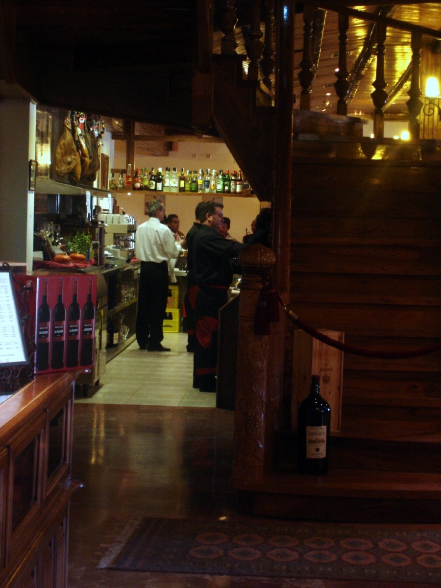 Llegamos con el tiempo suficiente para tomar una copa de vino «Arzuaga Crianza del 96» servido con una tapa gentileza de la casa.