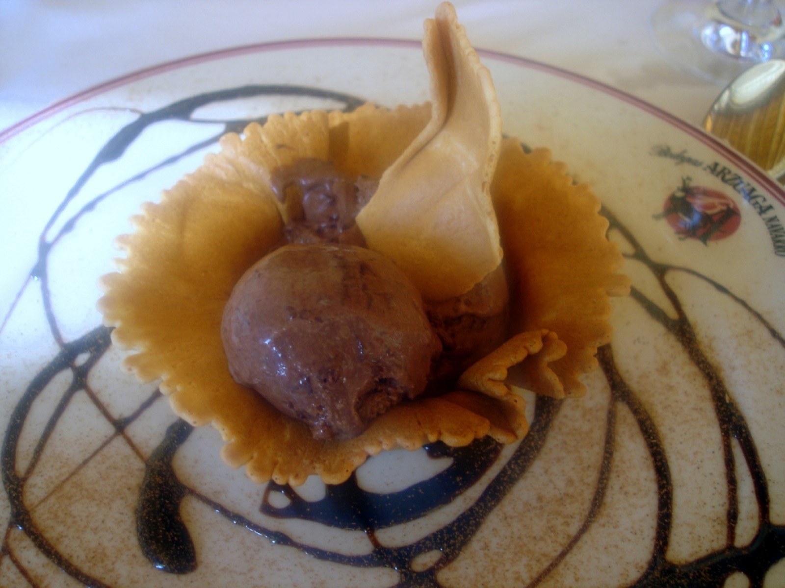 De postre unos cafés, menos los pequeños que se pidieron una tulipa de helado artesano de chocolate (4€) dejaron el plato limpio pero el mantel, blanco impoluto, se llevó la peor parte.