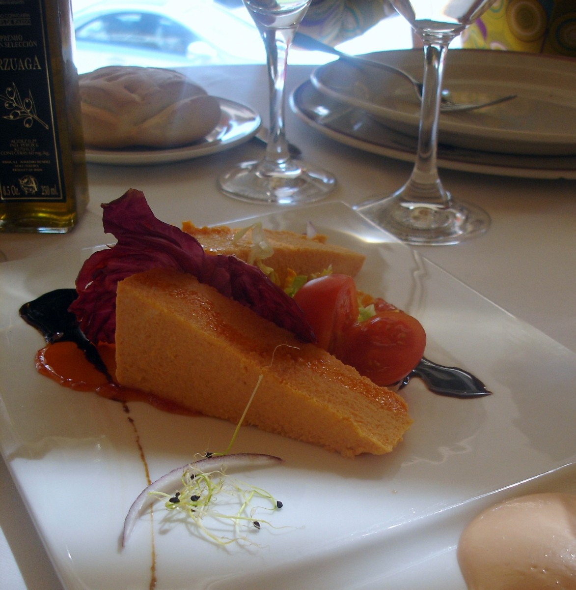 Los entrantes muy ricos, tanto el revuelto como el pastel de cabracho, que por cierto tenía muy buena presentación. El lechazo, muy tierno y sabroso.