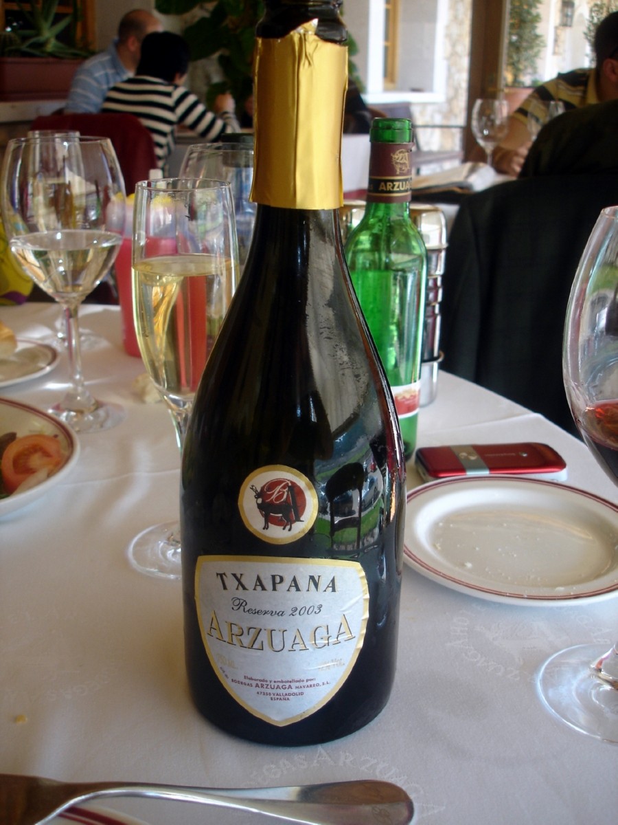 Una botella (37’5 ml.) «Arzuaga Crianza 96 «y una «Txapana reserva del 2003″, vino espumoso, fueron los complementos perfectos para armonizar tan rico banquete.