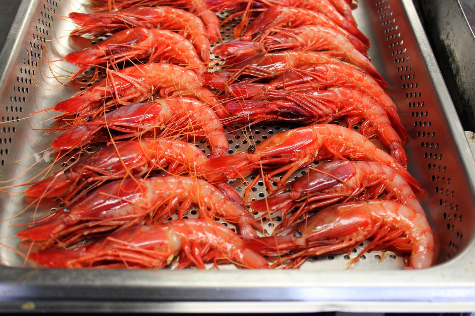 A esto le siguió otra bandeja, también a centro de mesa, esta vez con productos de la costa: gamba roja y cigalas. Perfectas el punto de cocción e inmensas de sabor.