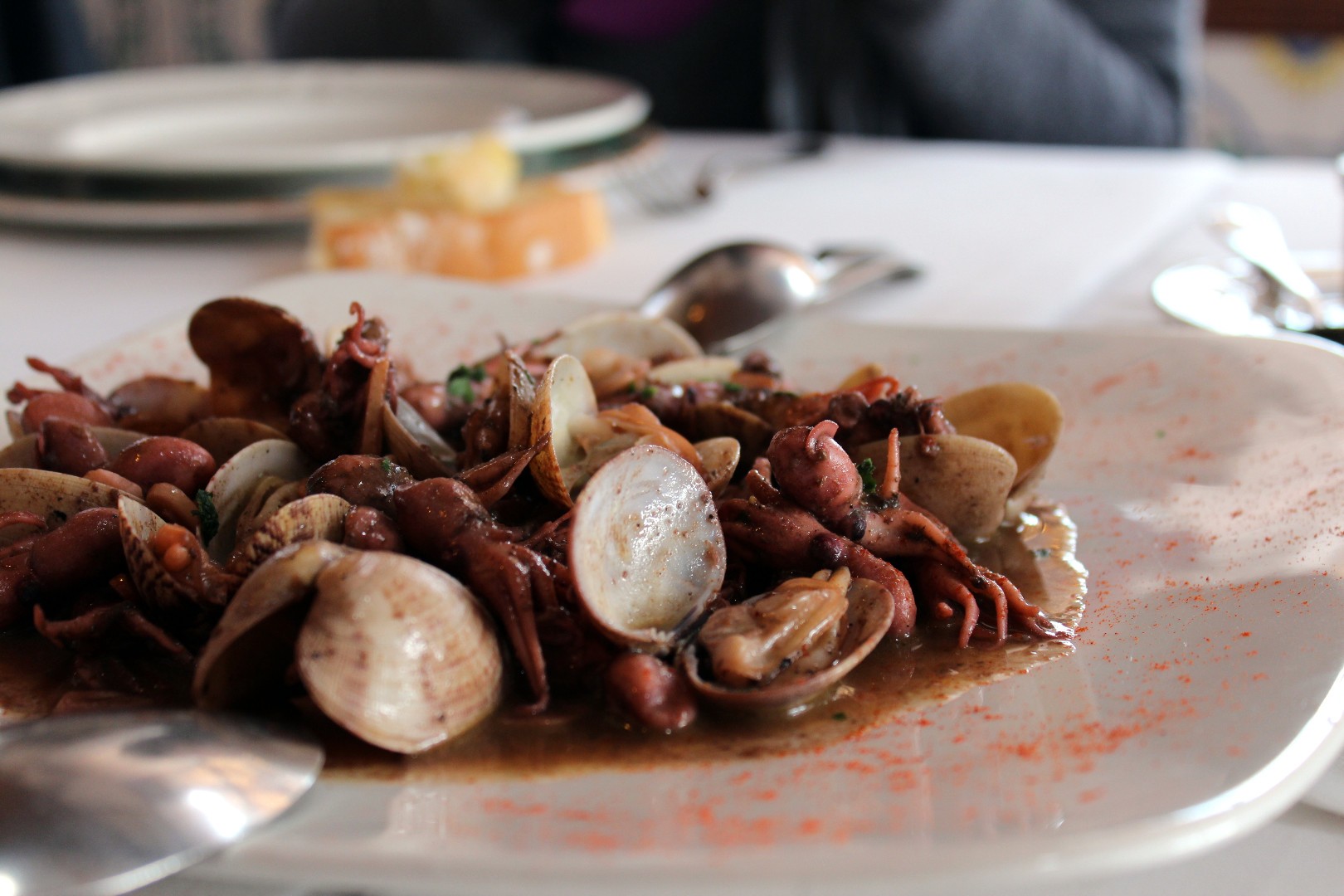 Para terminar los entrantes Salvador Gascón nos propuso un salteado de pulpitos con tellinas. Delicioso!