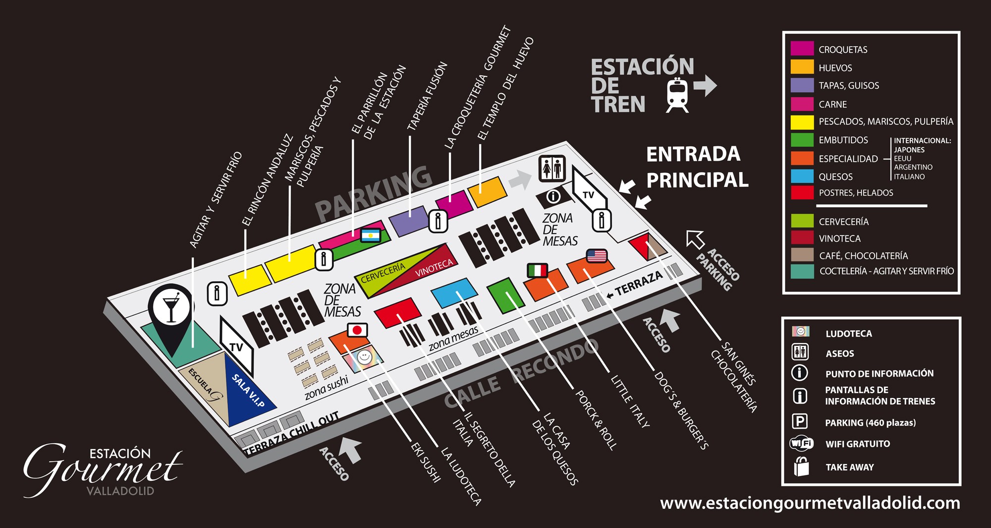 Por esto que la Estación Gourmet de Valladolid pretenda convertirse en el primer salón gastronómico permanente de Castilla y León en el cual, en un mismo espacio, se puedan degustar las mejores tapas, los mejores productos, maridados todos ellos con productos de la zona o bien con cocteles exclusivos.
