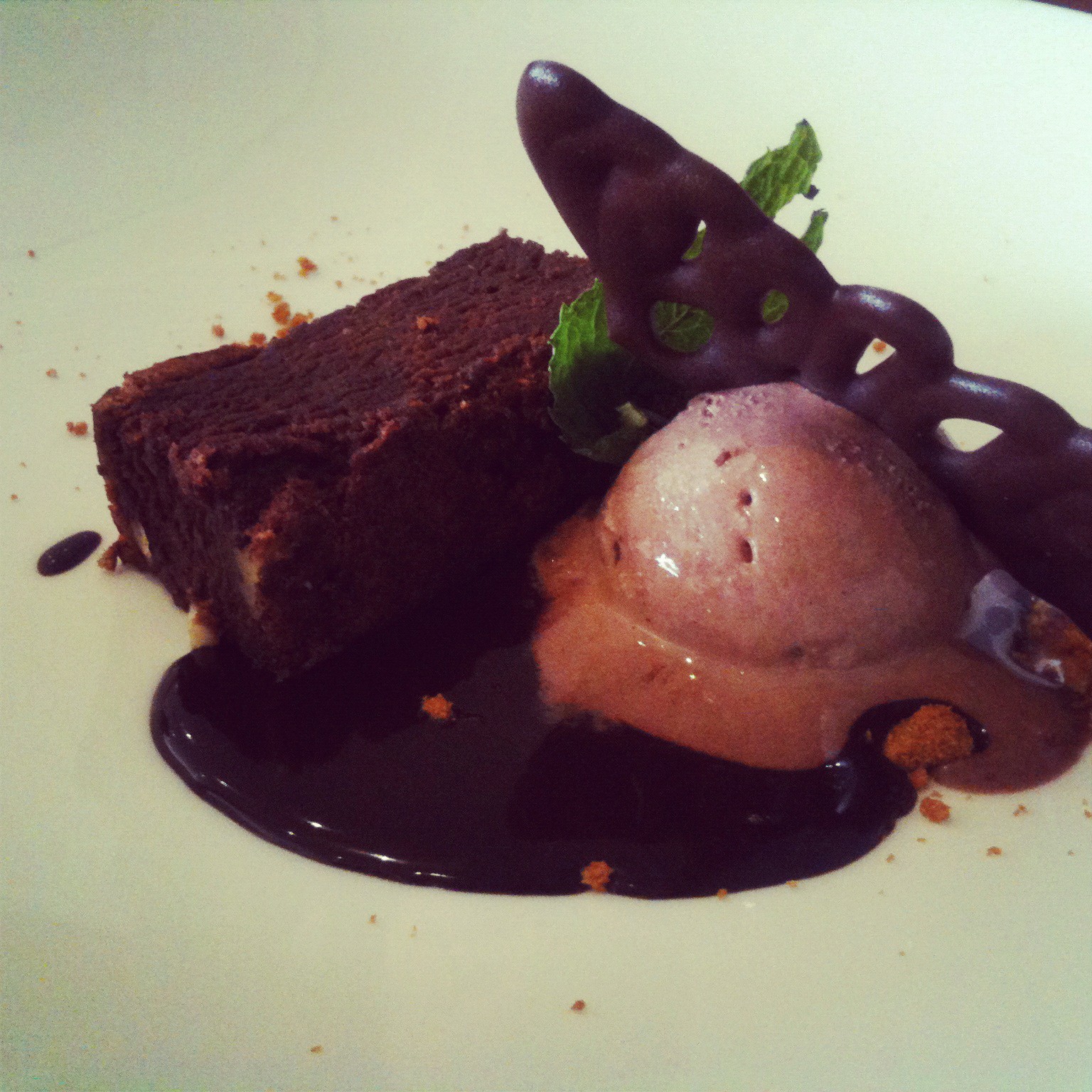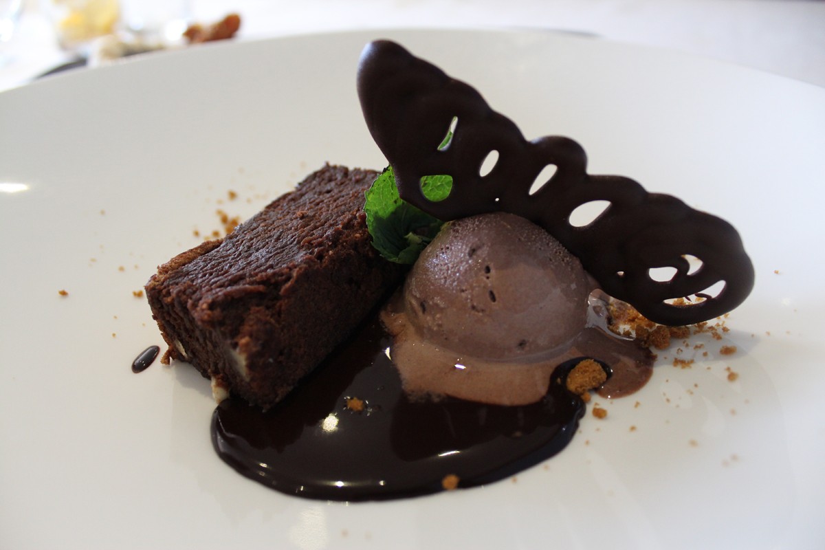 Una pieza muy jugosa, y grasa como así nos indican en la carta, que se deshace en la boca. Un verdadero delirio en cada bocado. Tras acabar con el plato, que dejamos igual de limpio que la salsera de los peques, agradecimos al camarero sus recomendaciones. En los postres no pedimos opinión y si carta libre. Los niños, para variar, un postre a base de chocolate. Un «Bizcocho templado de chocolate con jugo frío de cacao y helado de chocolate» fue su elección.
