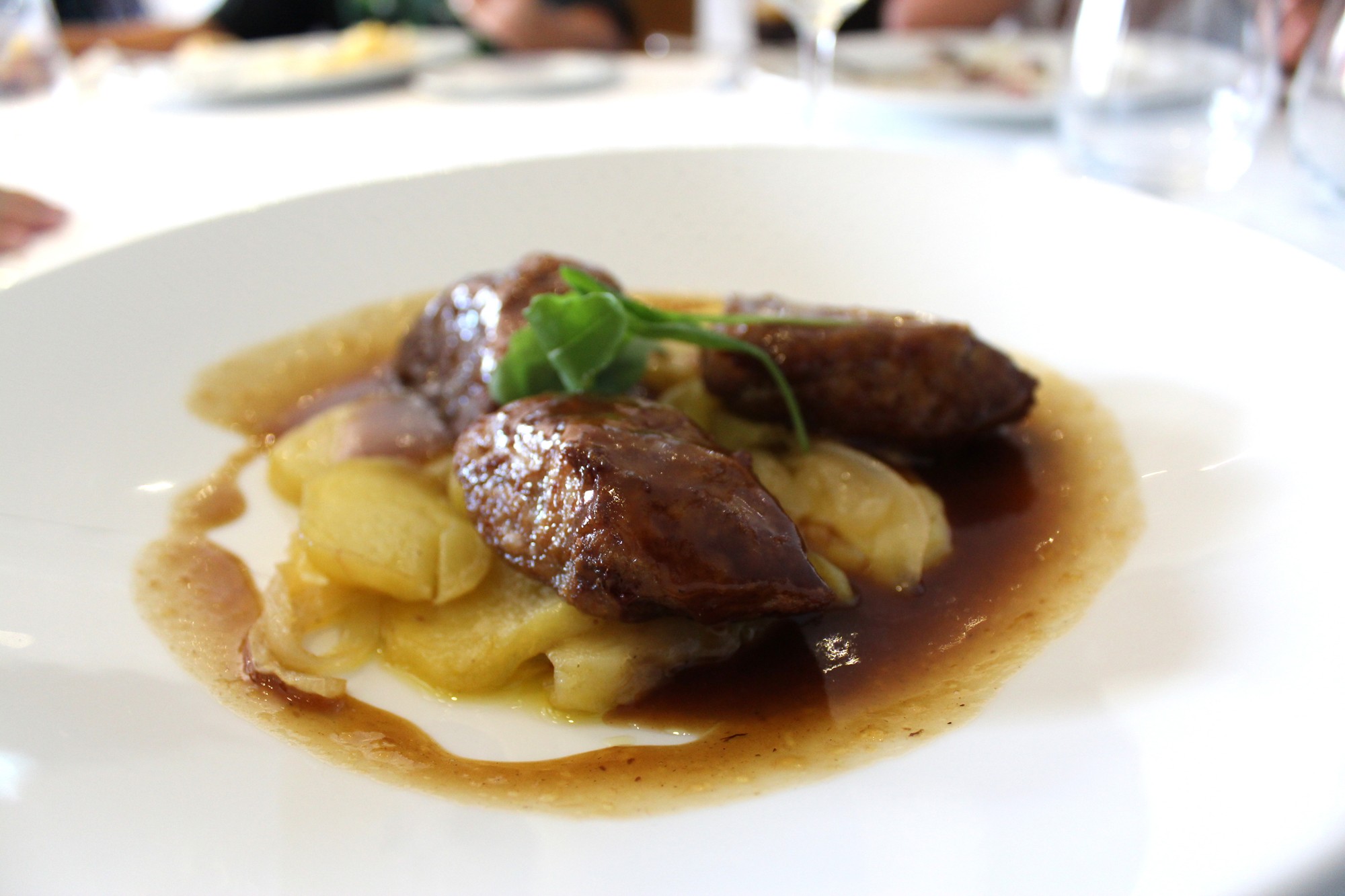 De la «Ensalada de atún ahumado, manzana y queso de cabra» poco podemos decir, ya que aquí el atún no sobresale mucho sobre el resto de ingredientes y quizás la crema de vinagre tuviera que ser más suave.