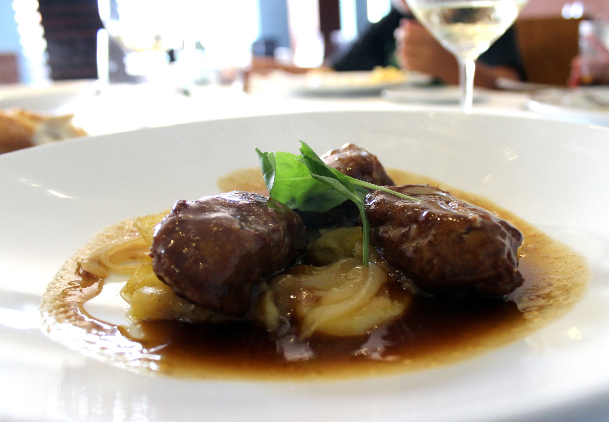 Tras este buen comienzo pasamos al plato que nos recomendó el camarero. No se equivocó. El contramormo es una pieza situada en la cabeza del atún que, una vez asada o guisada, puede confundirse o parecerse a una carrillera de cerdo, como en este plato «Contramormo al horno».