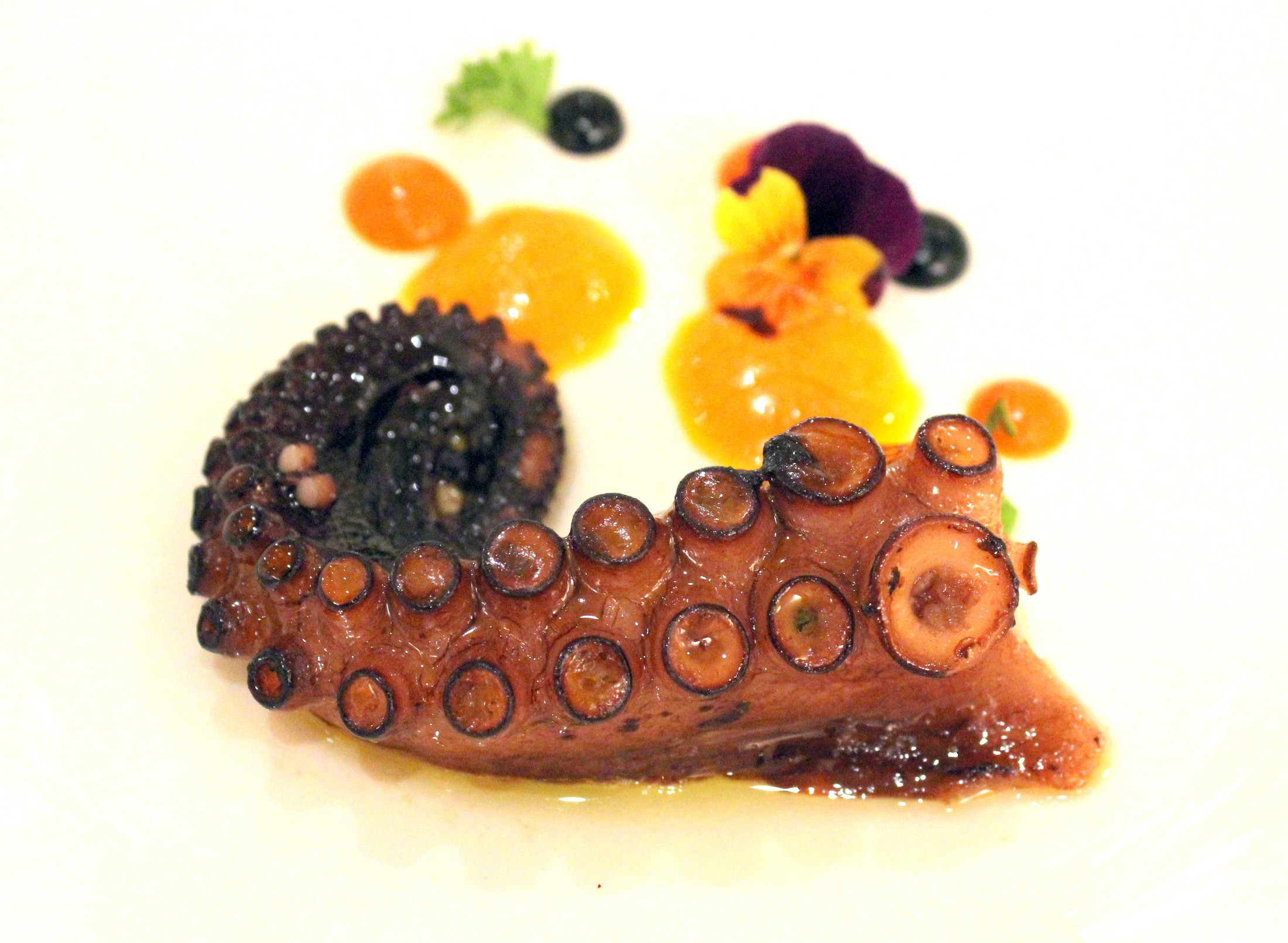 Para terminar con los entrantes un «Pulpo con emulsión de su jugo, mojo agripicante y almogrote».