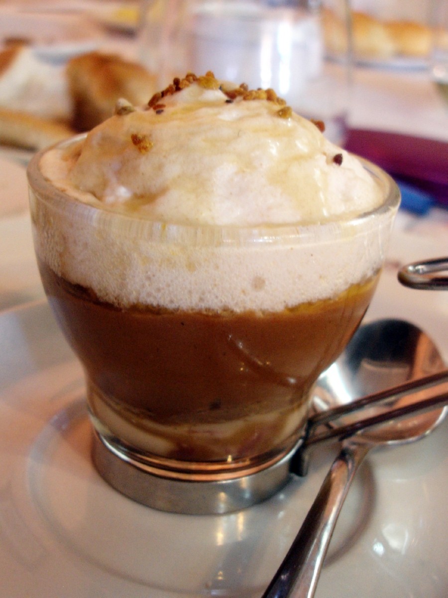 Sorprendente a la vista, el olfato y al gusto el «capuchino de morcilla de Matapozuelos con espuma de pan y polen con miel y piñones«. Un plato, que en su versión de pincho, le hizo ganador en el 7º Concurso Provincial de Pinchos de Valladolid.