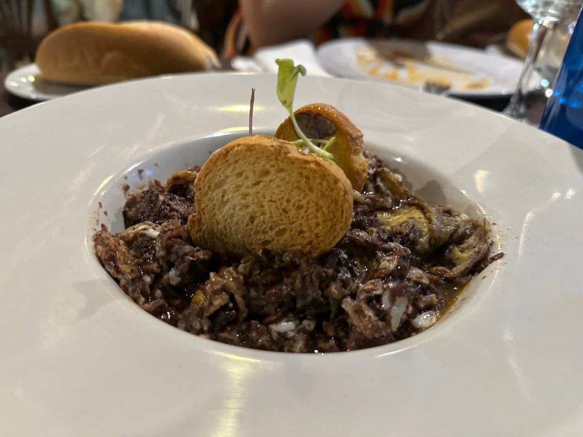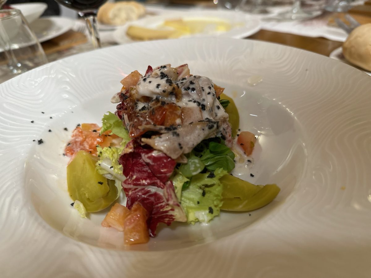 - Otro de los entrantes fue, la ensalada de perdiz en su escabeche y el carpaccio de venado,