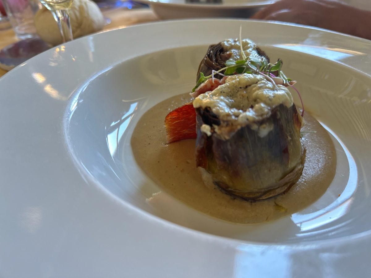 - Flor de alcachofa con crema de pato y bouquet de queso: Un plato que combina texturas y sabores de manera magistral.