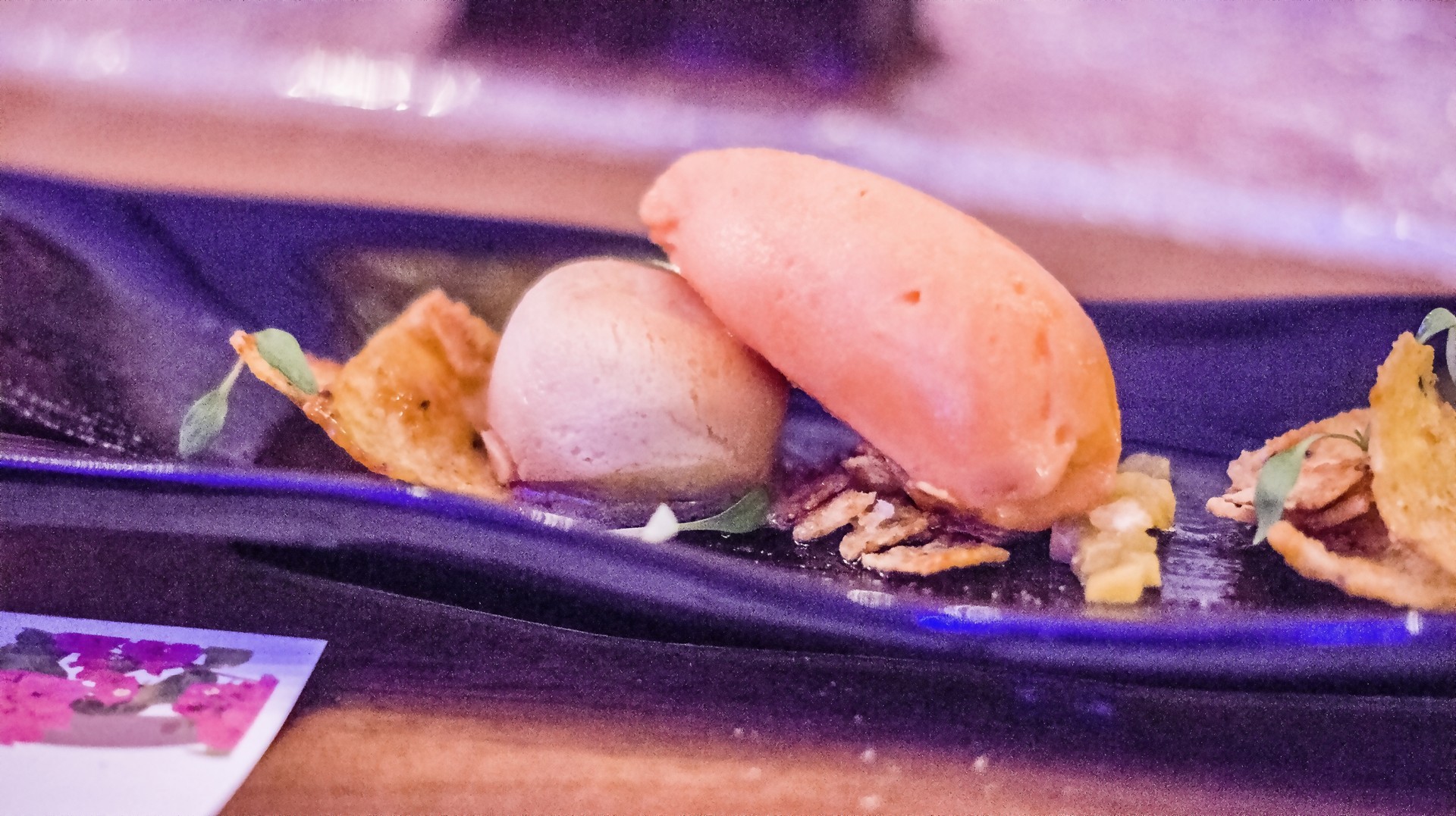 Un Helado de Zanahoria y Lima: mini babá, piña y nachos caramelizados jarabes cítricos y fruta de la pasión.