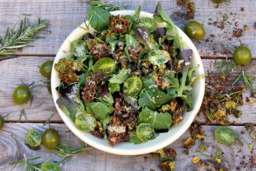 En esta ocasión hemos elaborado una Ensalada de canónigos con queso fresco a la cual hemos aderezado con una emulsión de tomates deshidratados y cúrcuma fresca.