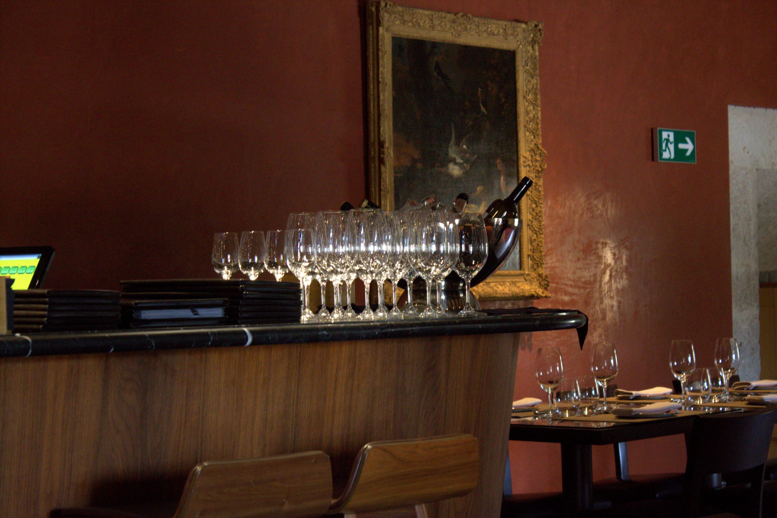 Para acceder a la Vinoteca hay que recorrer varias estancias de la Abadía que nos transmite la paz que tuvieron sus habitantes y la exclusividad que ofrecen hoy en día. Una vez en el interior del restaurante vinos de donde viene su nombre con tan solo ver la «decoración» de sus paredes.