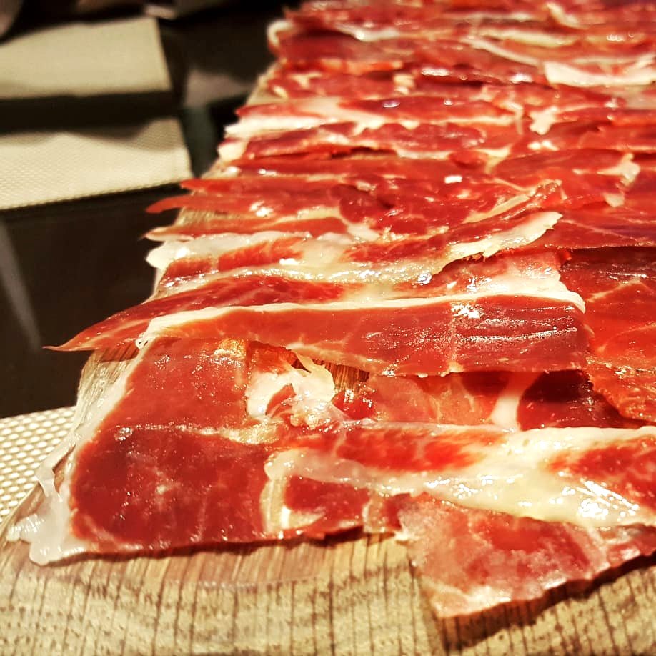 Seguimos con media tabla de Jamón Ibérico de  Bellota con tostas de pan y tomate. Nada que objetar. El jamón delicioso…
