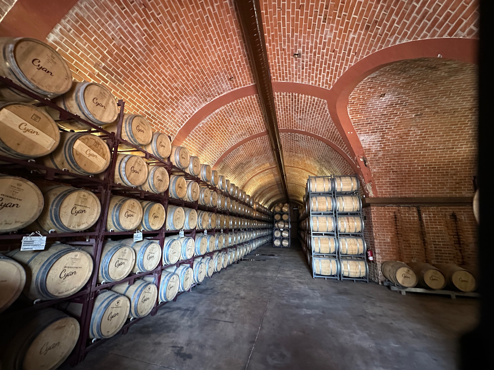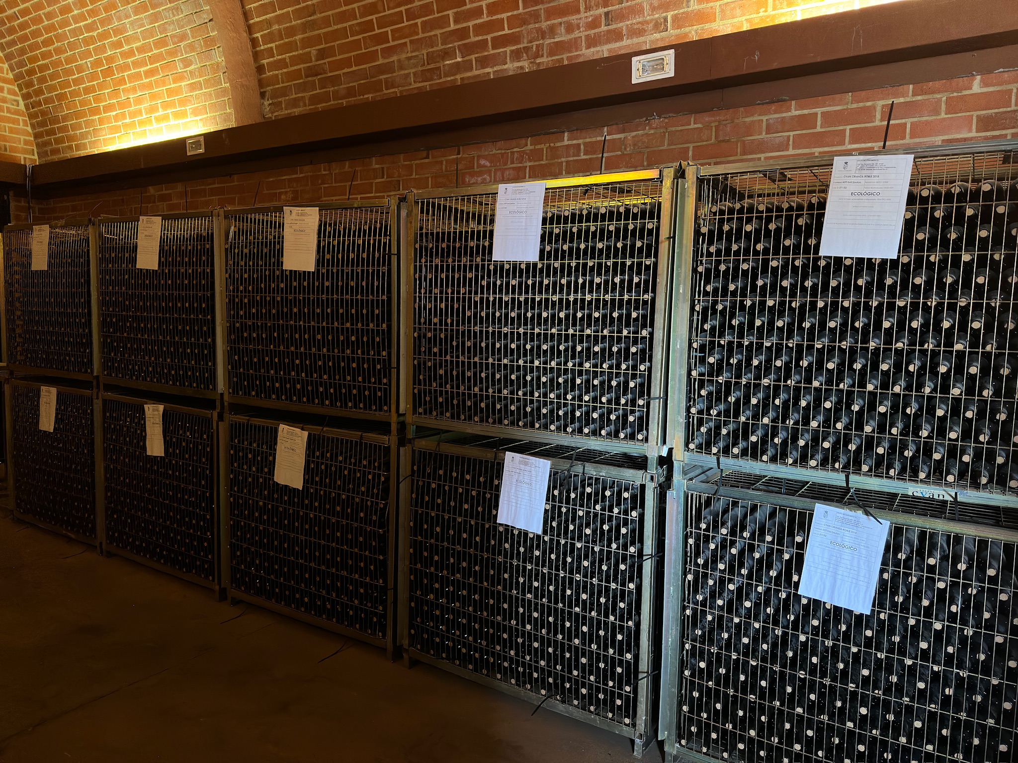La bodega Cyan, fundada en 1999, cuenta con tres naves dedicadas a la elaboración, embotellado, almacenamiento, y una sala de barricas y botellero con 700 barricas de roble americano y francés.