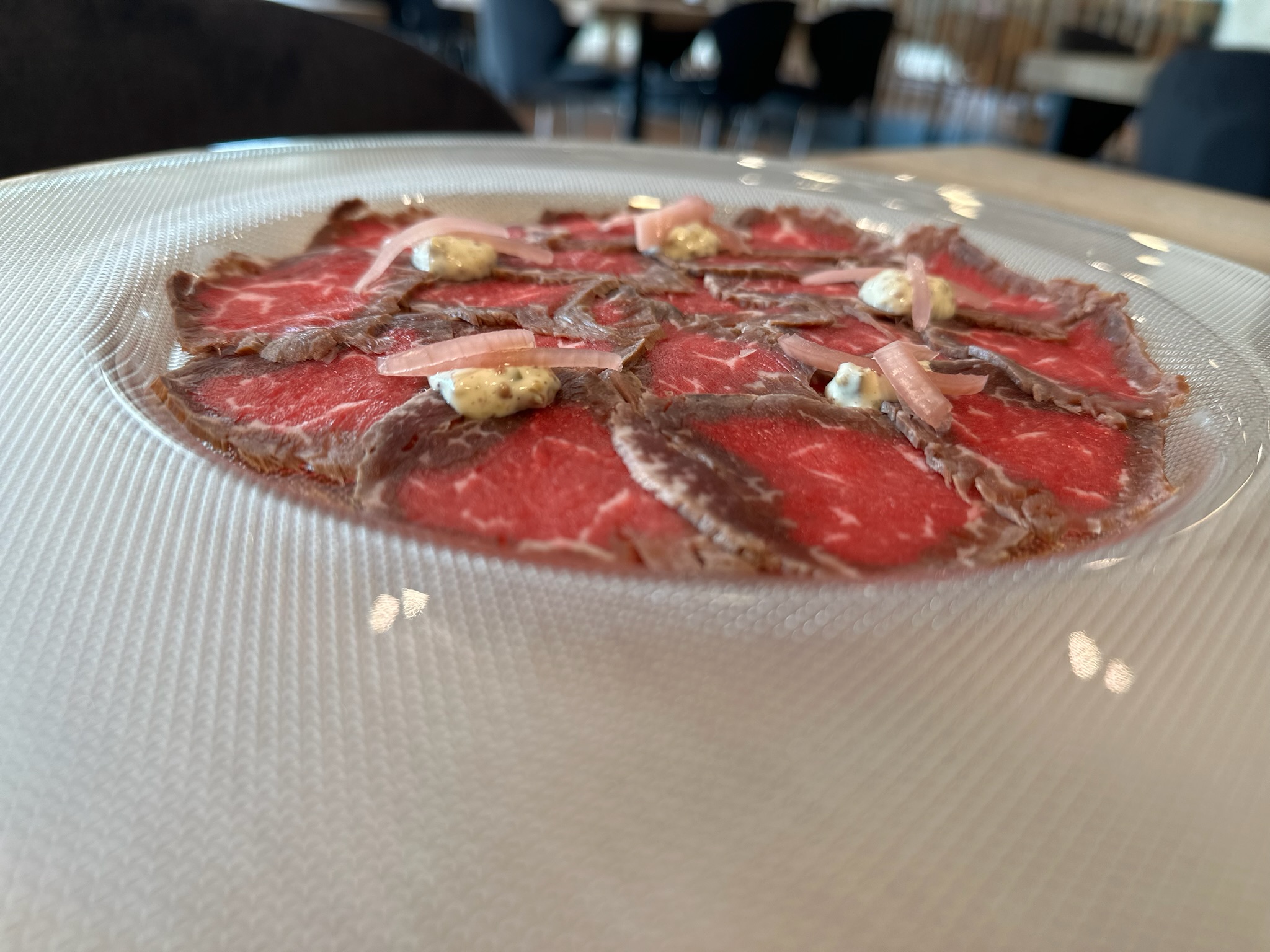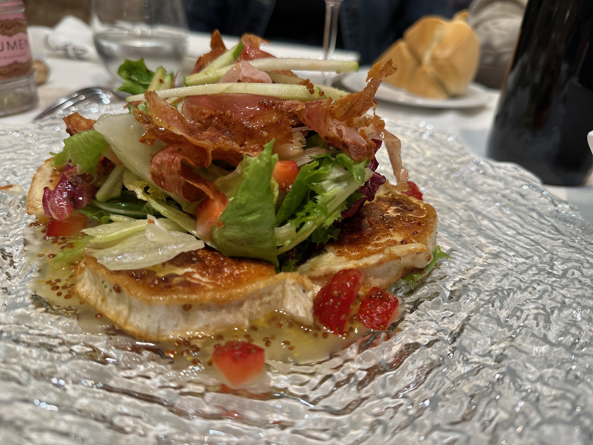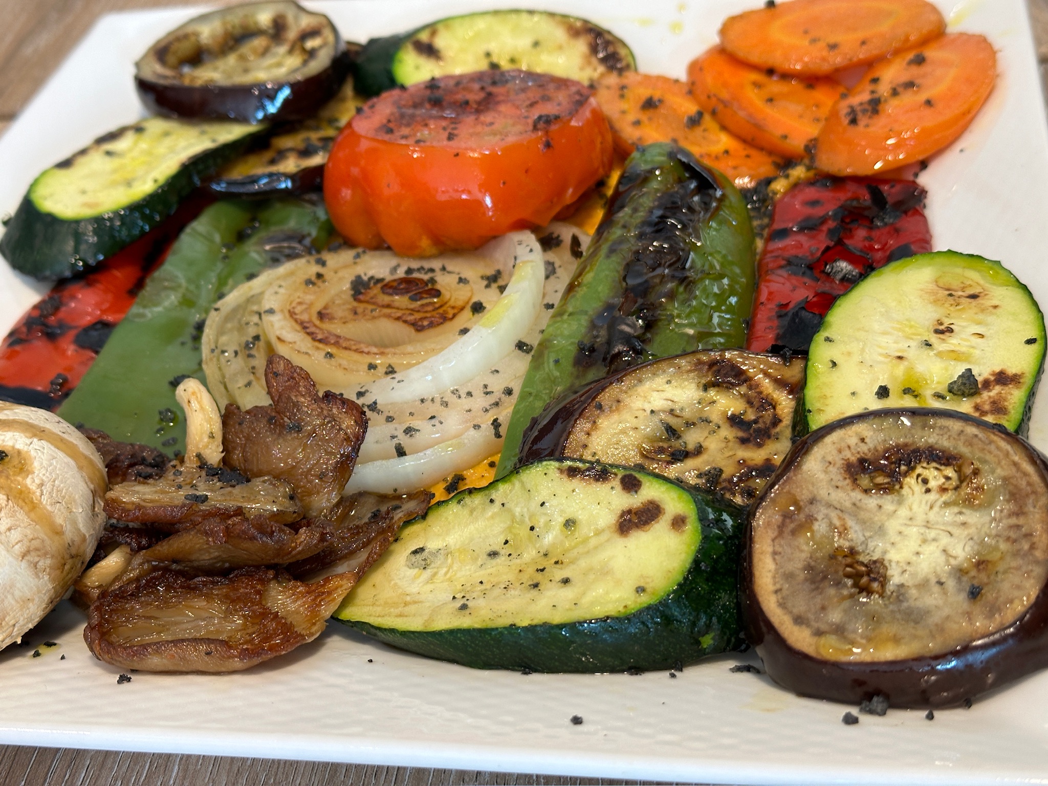 La parrillada de verduras y la ensaladilla rusa casera son solo el comienzo de un menú que abarca desde el carpacho de solomillo de Aliste ahumado hasta exquisitas croquetas de queso y manzana.
