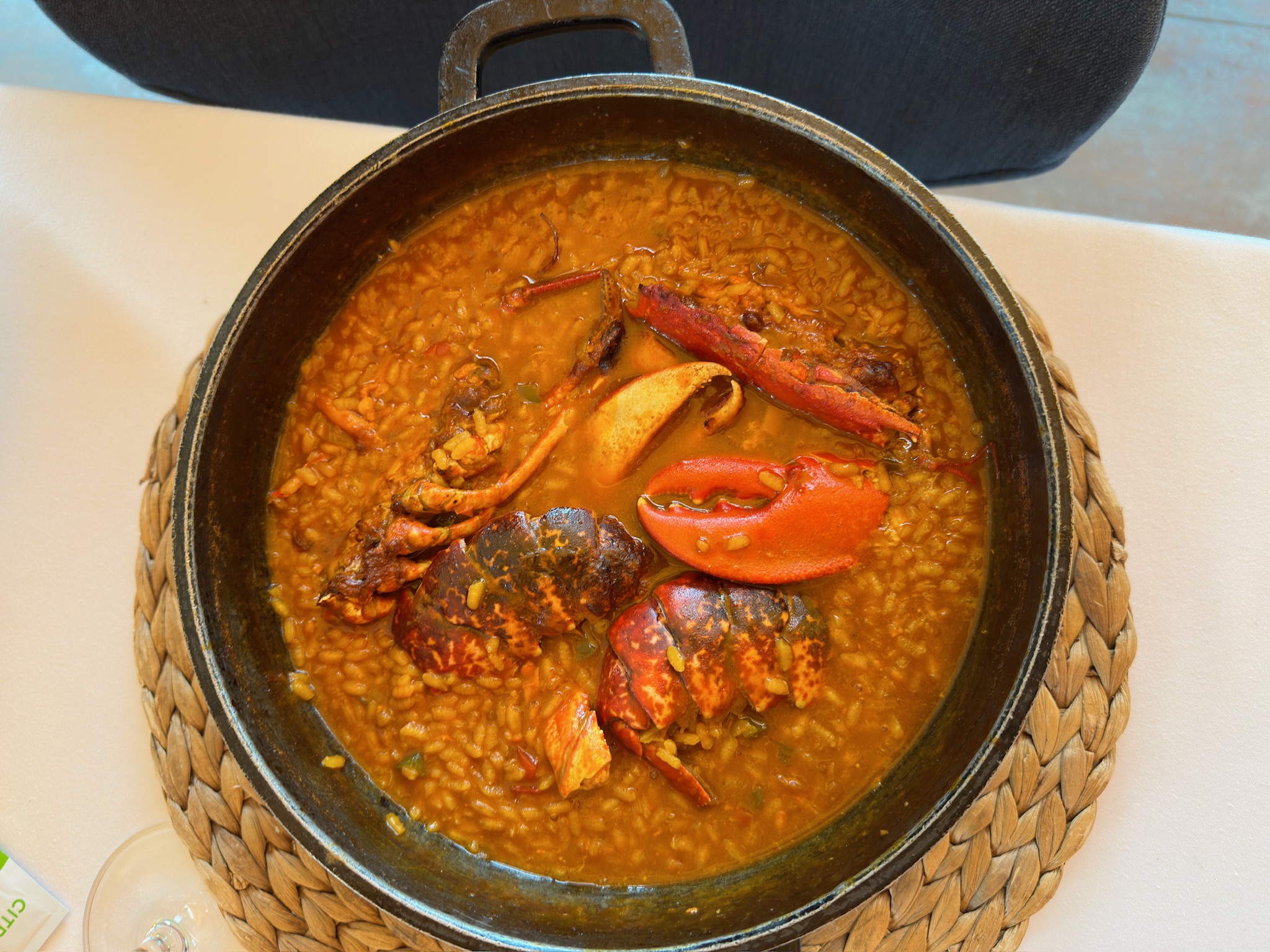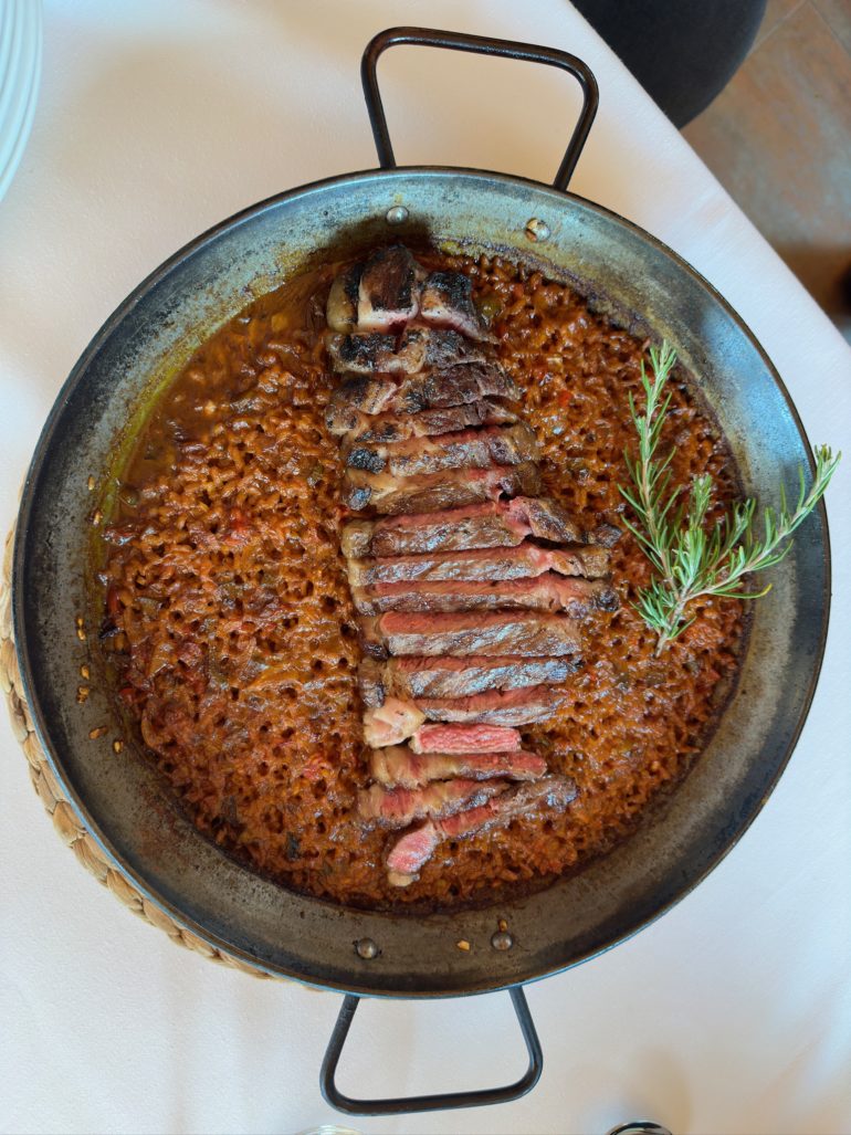 La sección de arroces del menú es igualmente impresionante, con variedades que incluyen arroz con secreto ibérico, chuleta, verduras y el exquisito arroz con bogavante.