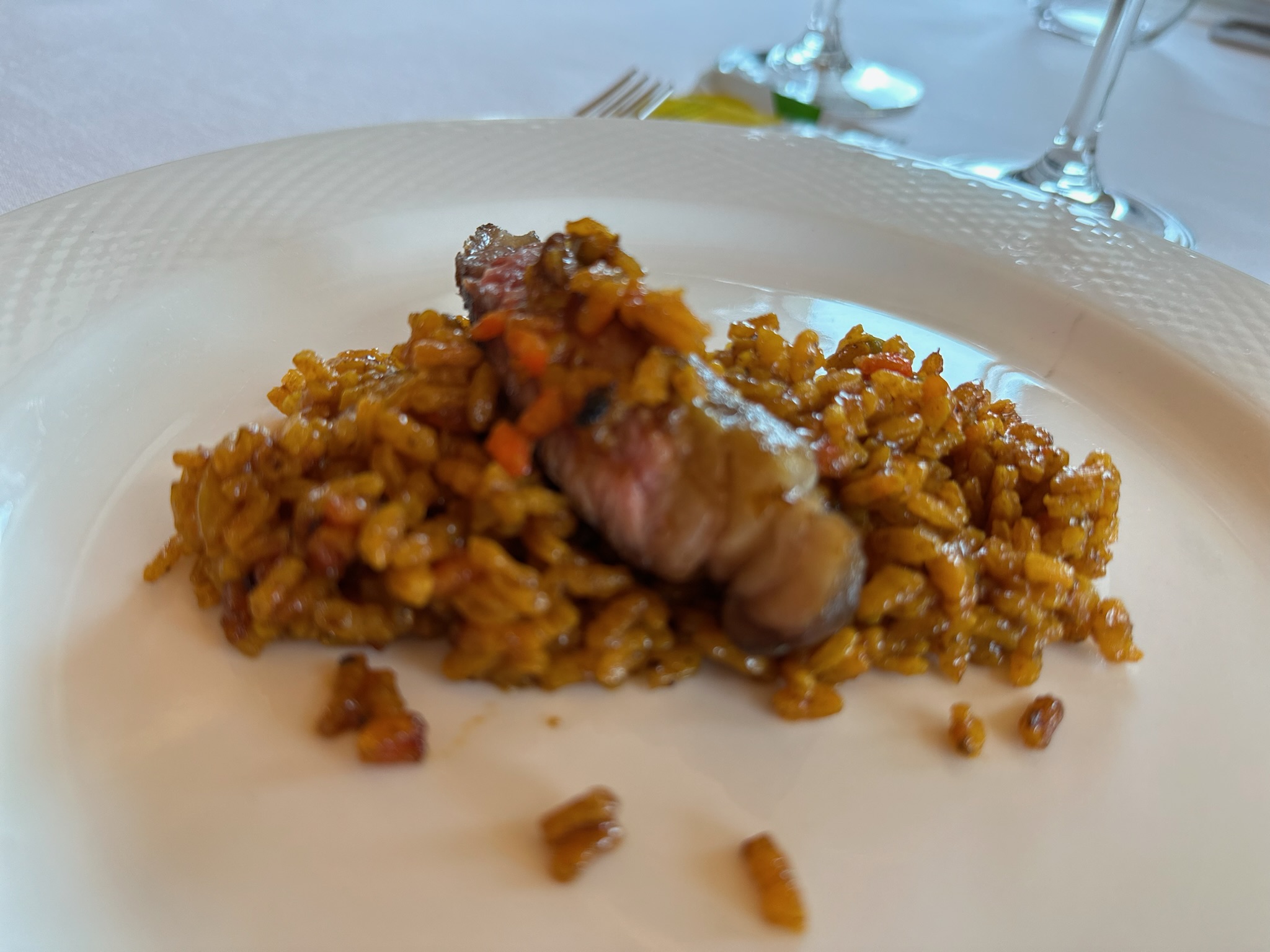 La carta de Lagarona se caracteriza por su tamaño justo, evitando la abrumadora variedad y enfocándose en la excelencia de cada opción. Entre los platos destacados están las zamburiñas y el cordero, preparados con maestría y acompañados por una selección de vinos excepcionales de Bodegas Piedra.