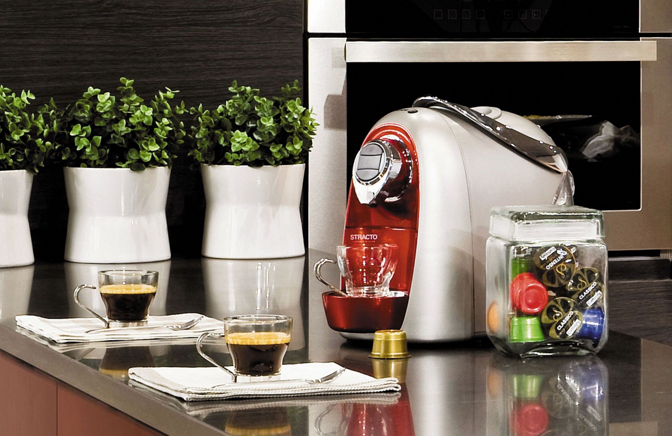 Entre las características de la nueva cafetera expresso Stracto cabe destacar la posibilidad de personalizar tres medidas de café: corto, expreso y largo, para que cada cual escoja el que más le guste. Cosa que en otras cafeteras de cápsulas del mercado esto no es posible.