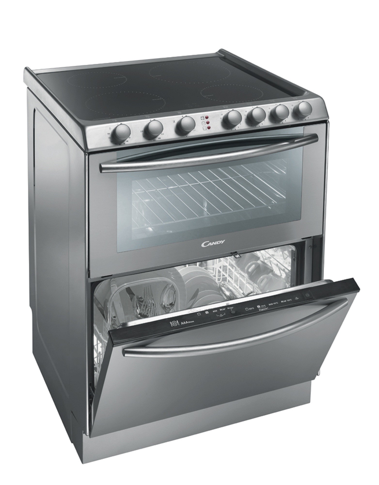 Para todos los damnificados con minicocinas, la firma Candy tiene en el mercado un práctico electrodoméstico que ocupa el espacio equivalente a un horno con su encimera, es decir el hueco de 60×60 cms de ancho de una cocina, pero en el que además tendremos la capacidad de fregar nuestra vajilla.