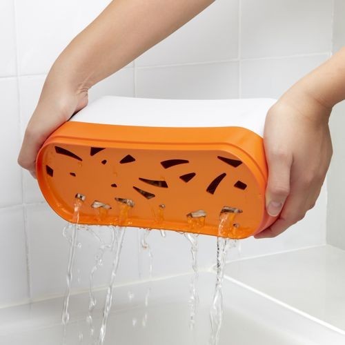 - Gira la tapa para escurrir el agua sobrante sujetando la tapa por el borde.