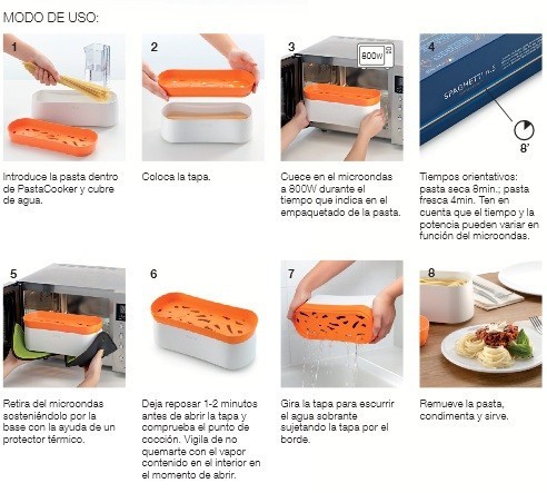 Las instrucciones del Cocedor de Pasta o PastaCooker de Lékué son básicas: