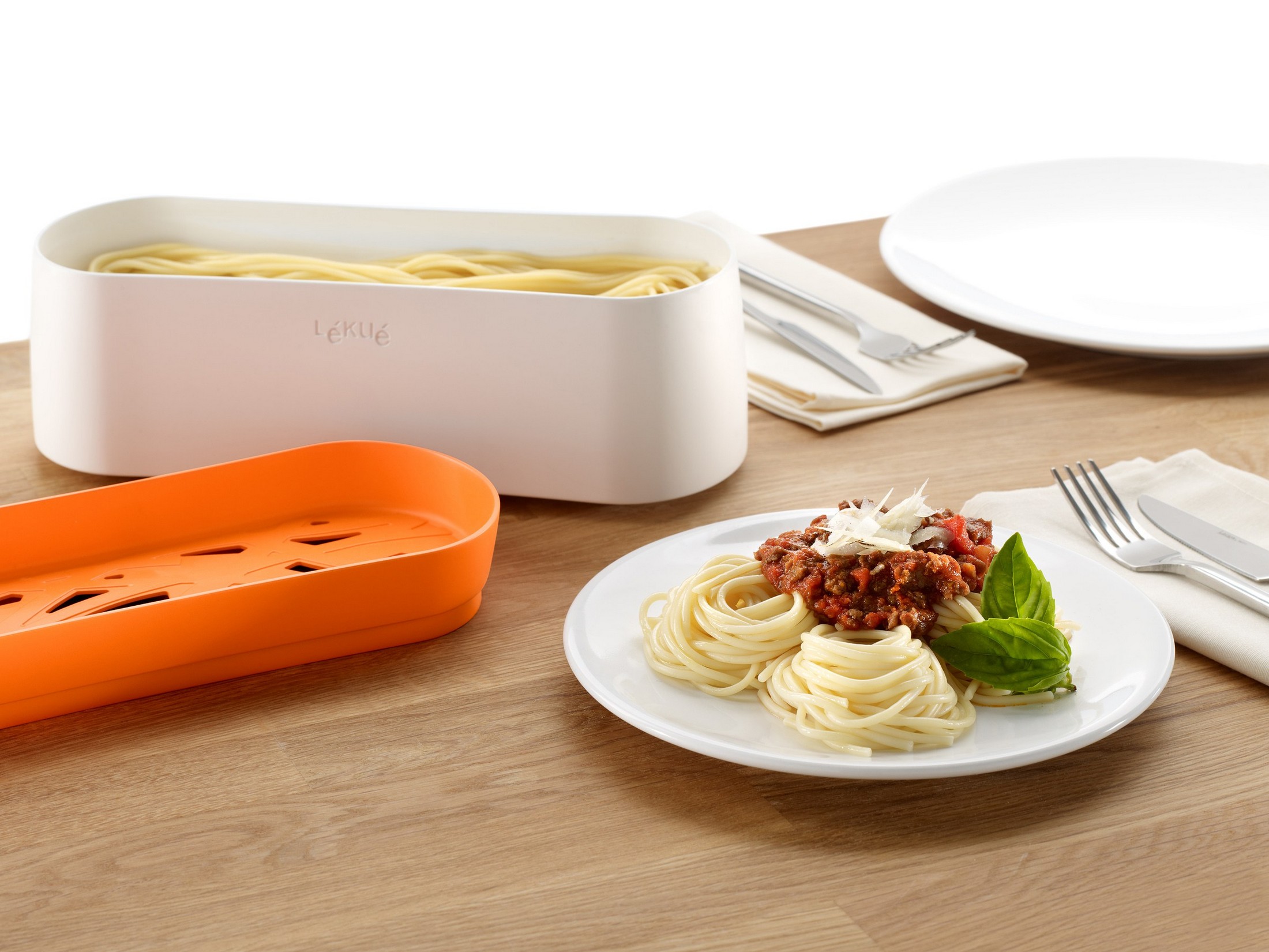 Y todo ello gracias a utensilios como este PastaCooker o Cocedor de Pasta para microondas de Lékué.