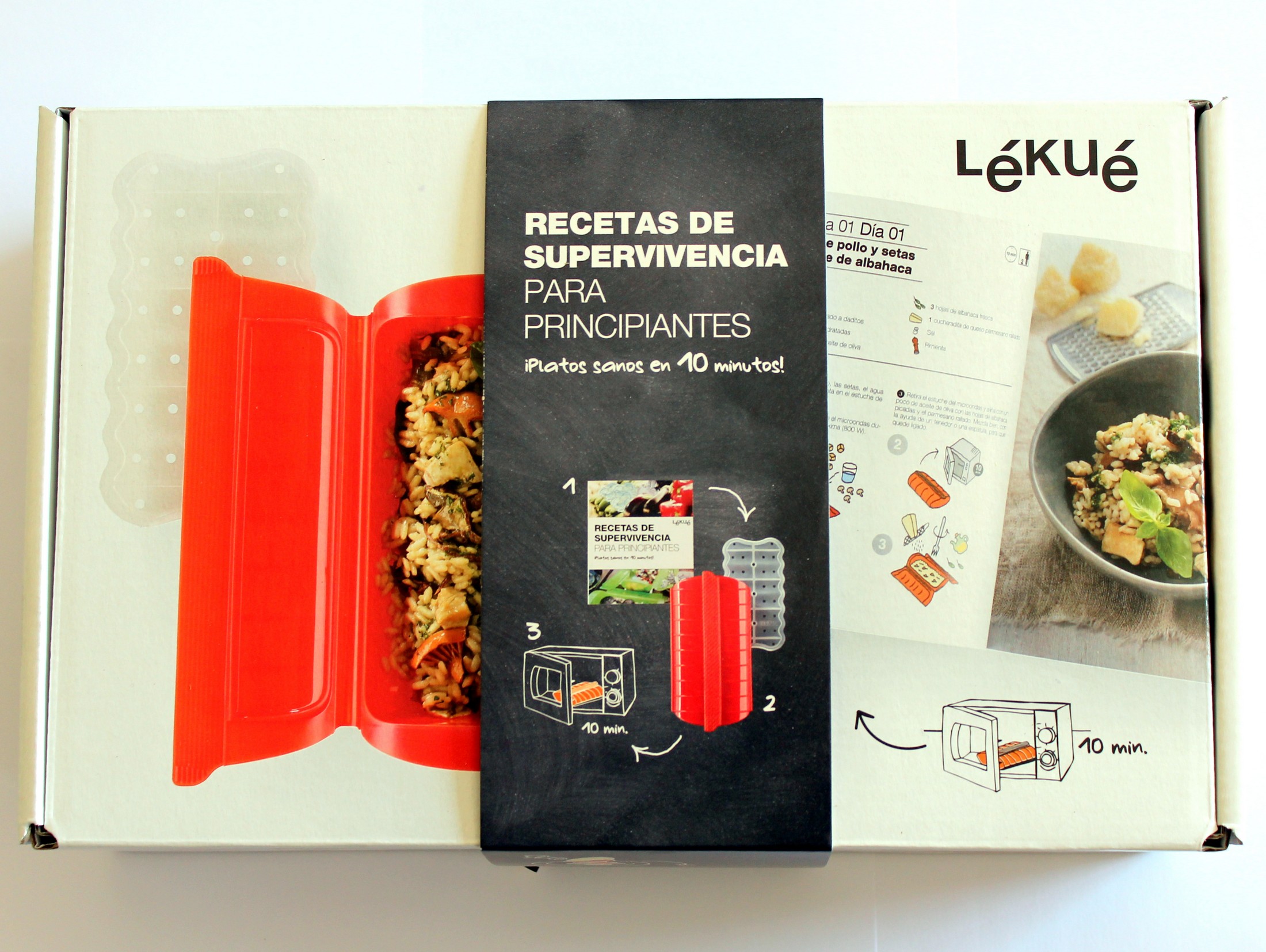 Acabamos de recibir el Kit de recetas de supervivencia para principiantes de Lékué. Un kit especial compuesto por un estuche de cocina al vapor y el libro de cocina «Recetas de supervivencia» para cocinar platos sabrosos y sanos en tan solo diez minutos.