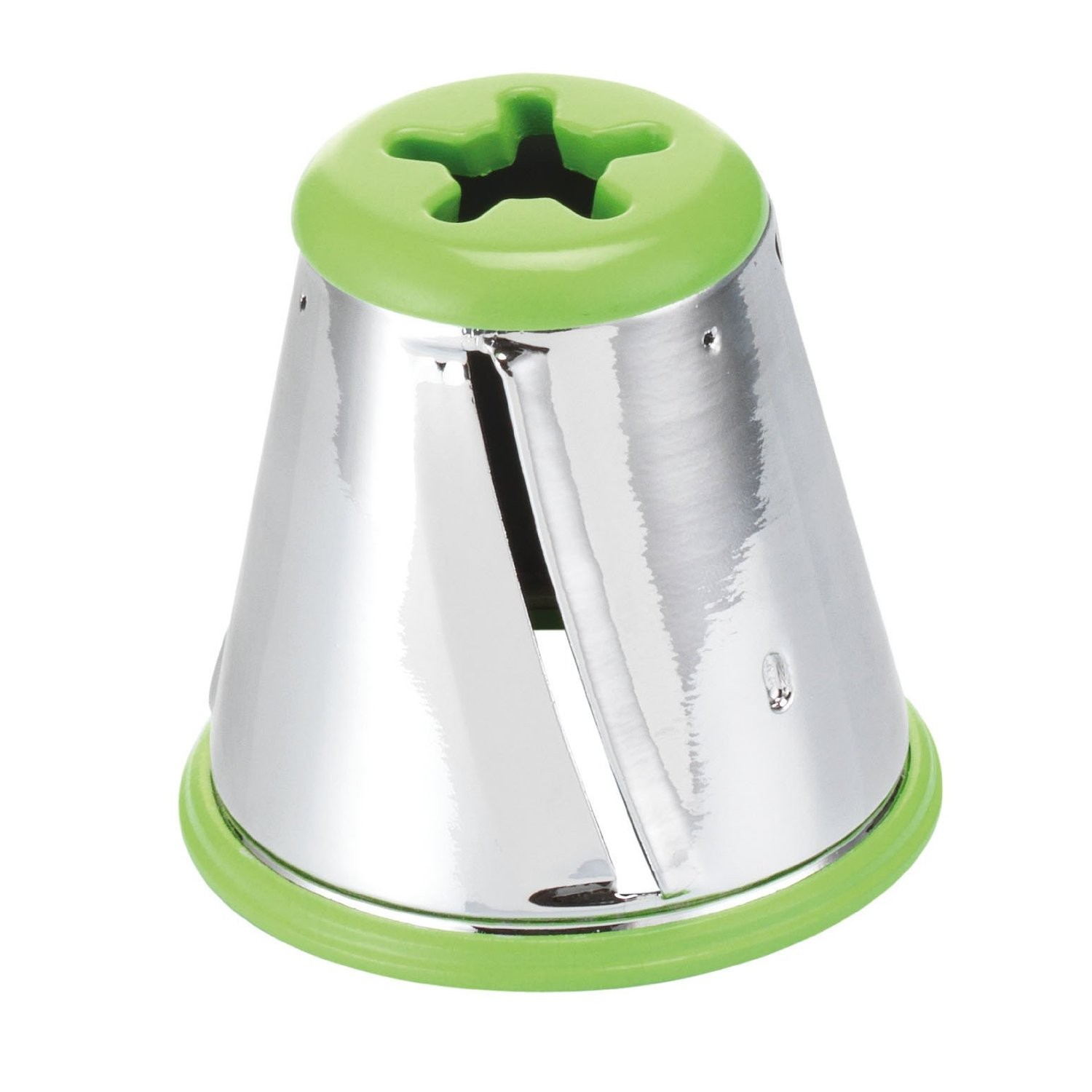 El cono de color rojo es ideal para rallar grueso verduras, frutas y hortalizas como zanahorias, patatas o manzanas; El amarillo viene perfecto a la hora de rallar queso, frutos secos o pan; el cono verde claro nos prepara unas lonchas finas de cualquier producto solo igualables por un cocinero profesional; con el cono verde oscuro podemos realizar unos cortes de lonchas gruesas de patatas con las que poder elaborar una deliciosa tortilla de patata o darlas el uso que creas más conveniente; y por último, con el cono de color naranja podemos rallar finamente lo que queramos.