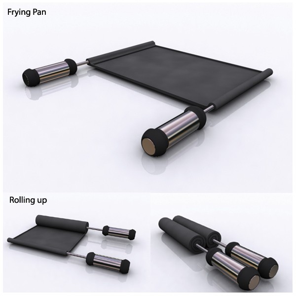 La sarten enrollable la limpias con un paño la enrollas y a guardar en cualquier cajón sin que ocupe mucho espacio en nuestra cocina, es un diseño de http://www.designboom.com/