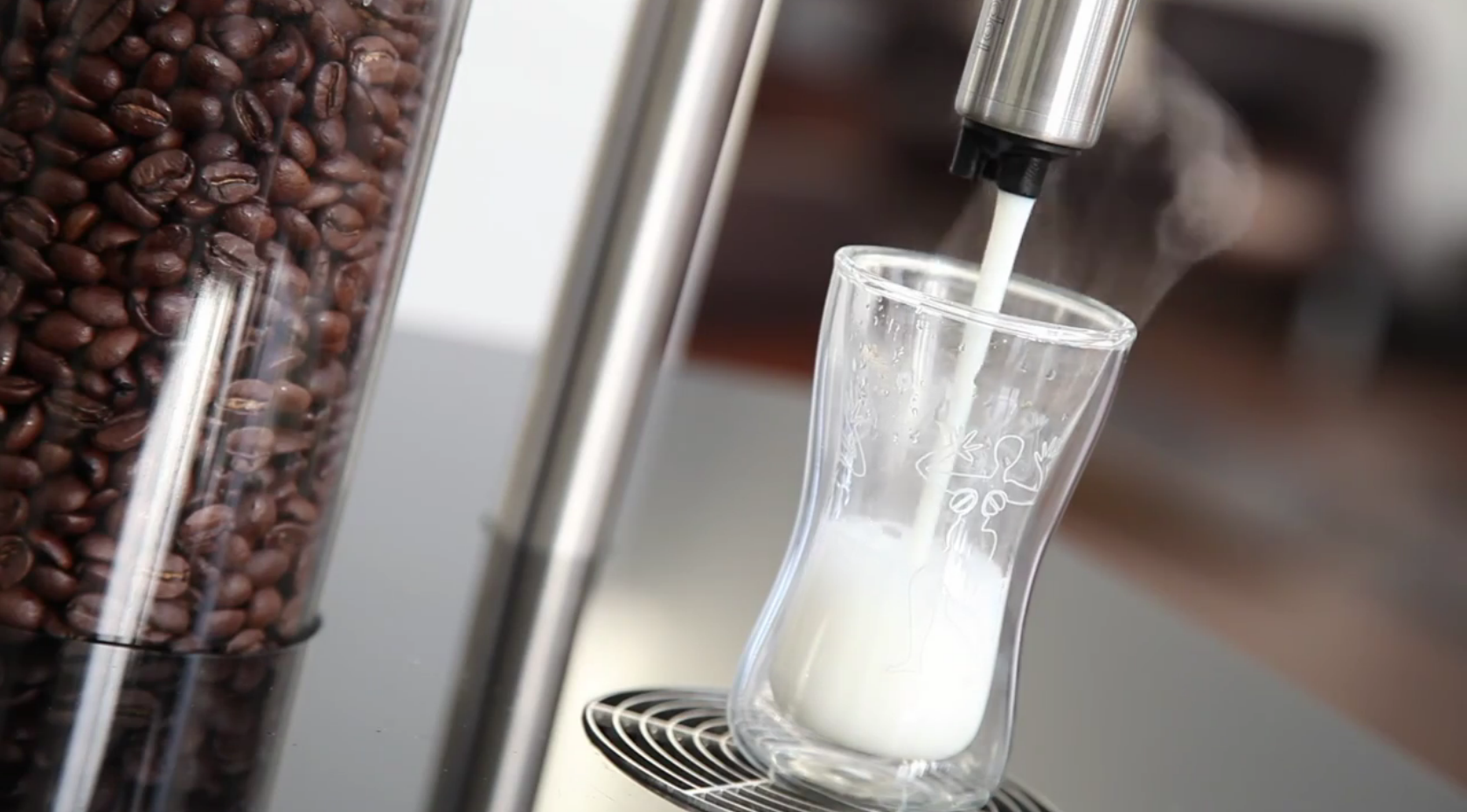 Las virguerías de la mejor cafetera del mundo, empiezan con su doble molinillo de café conectado con varios depósitos (por ejemplo para café con o sin cafeína) y el sistema de espuma más pequeño del mundo (va incorporado en el extremo del grifo) que permite calentar la leche a demanda y genera espuma para corregir la textura. Por supuesto después de cada uso limpia todas las mangueras con agua mediante el sistema Scanomatic.