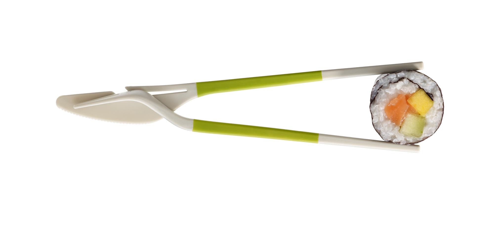 Si te gusta la cocina japonesa pero los palillos no son lo tuyo, no te preocupes ya que Lékué ha ideado el «Twin One«, un práctico e innovador utensilio que fusiona oriente y occidente en un único producto.