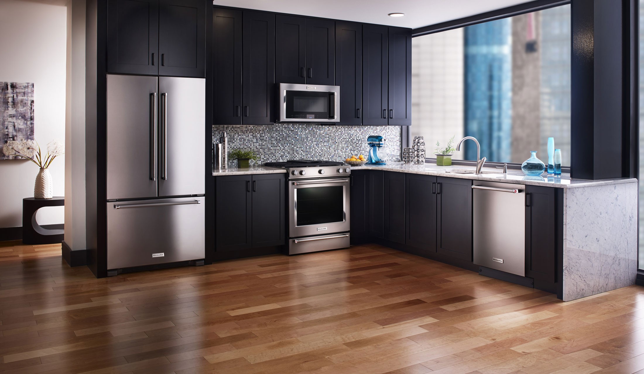 • De Kitchen Aid: Diseño artesanal, acero y elaboraciones con acabado profesional. Sus hornos reducen las oscilaciones de temperatura y los frigoríficos mantienen la frescura de los alimentos durante 14 días.